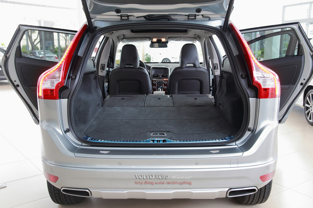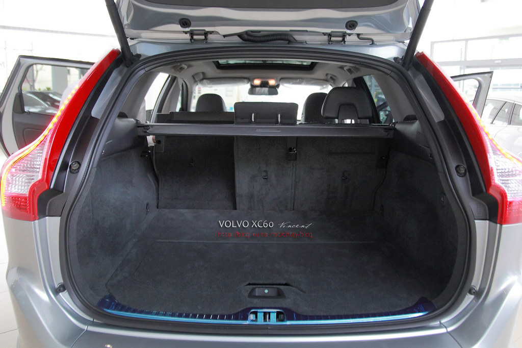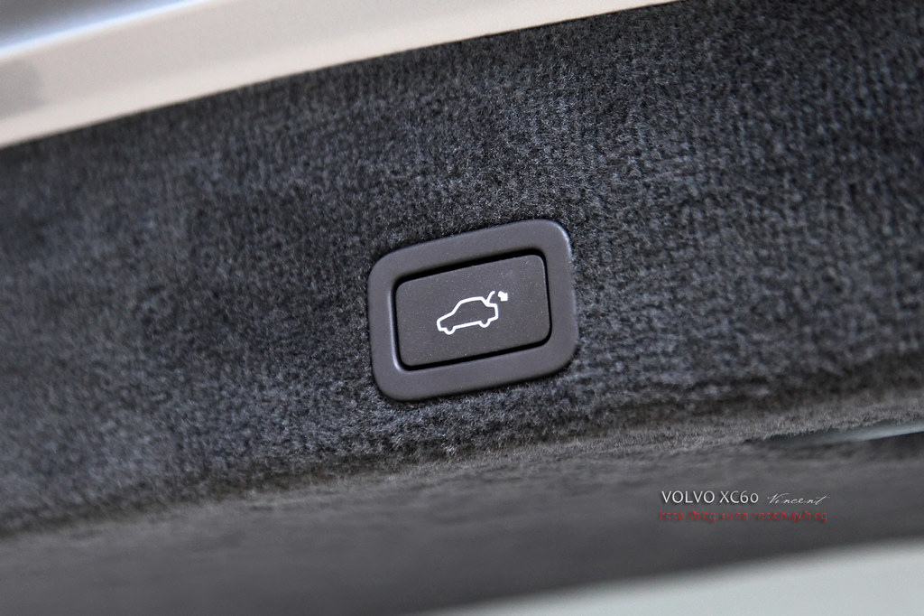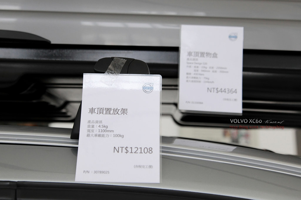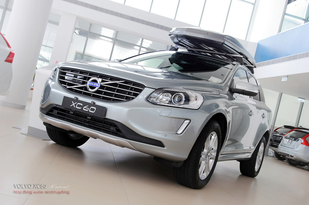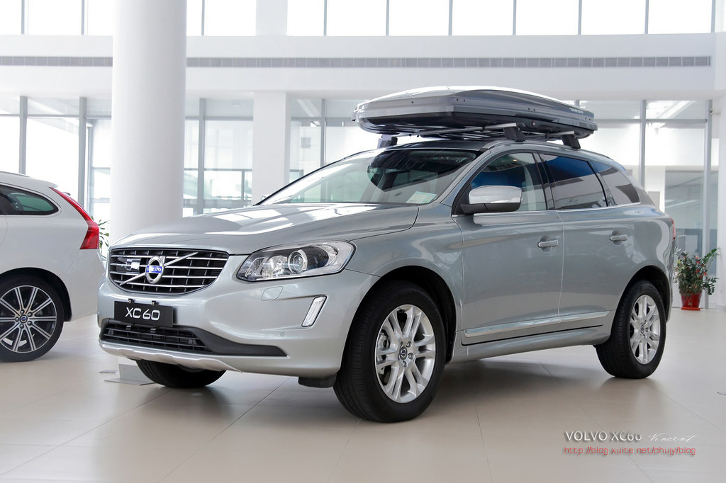 本車型為 XC60 D5 旗艦款, 上方搭載了車頂架和置物盒, 這感覺就是要去郊遊露營去的休閒風阿