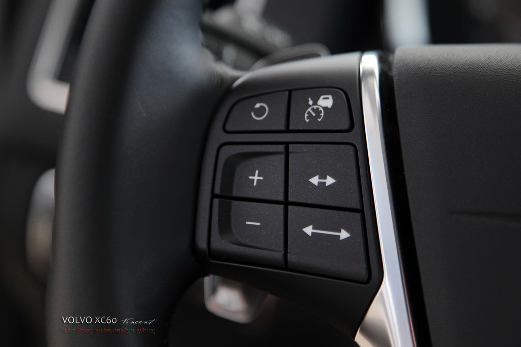 方向盤上左邊按鈕可啟閉 ACC 主動車距控制巡航系統, 以及設定遠近距離