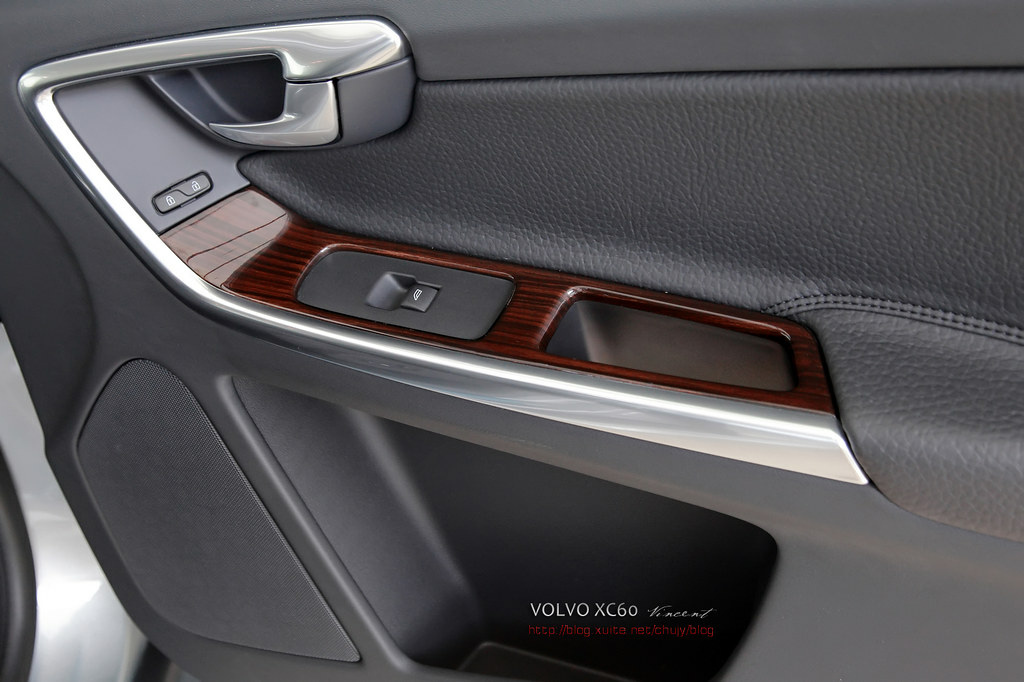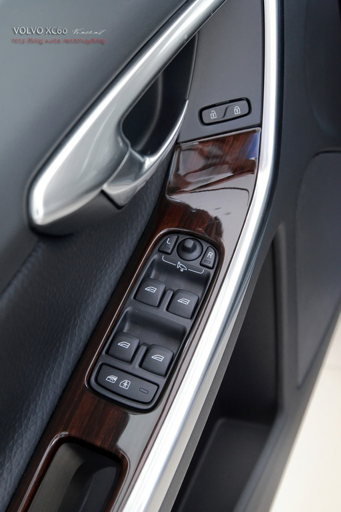 車門邊, 利用鍍鉻以及木紋飾版營造質感, 四門電動窗以及左右後視鏡調整, 後方為 電動兒童安全鎖