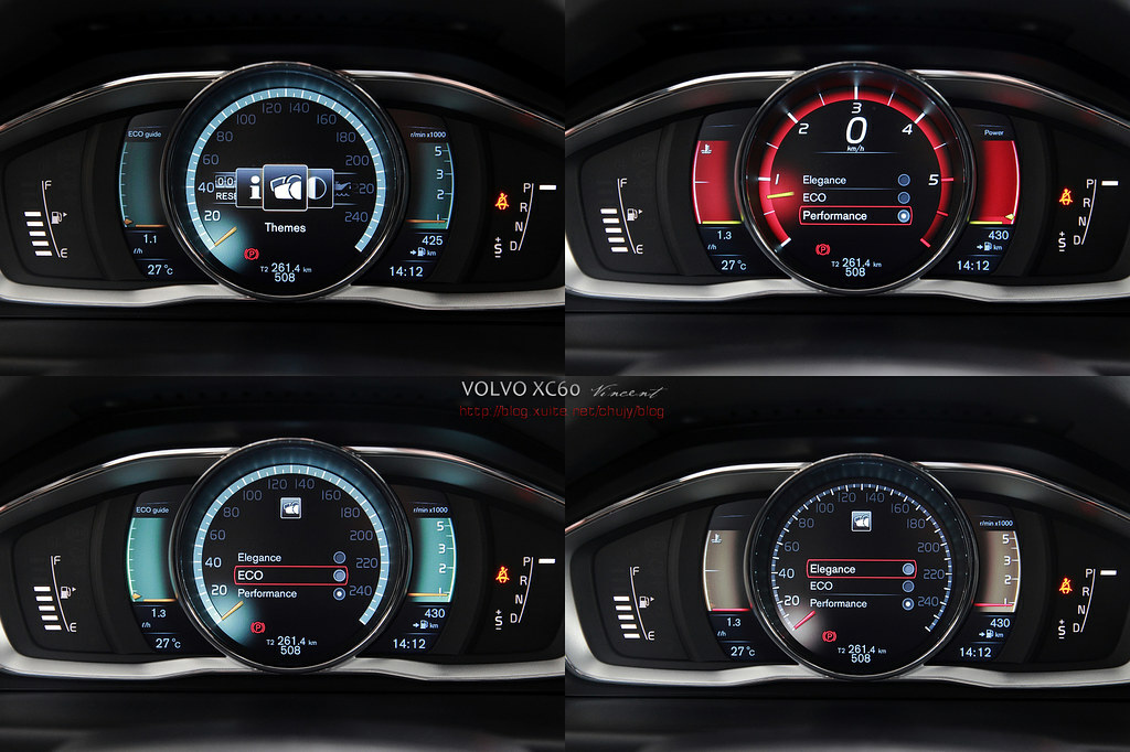 駕 駛座前方採用數位儀表組, 以8吋主動式TFT液晶顯示螢幕來提供時速、引擎轉速與油量等資訊, 並且提供三種氛圍燈光, 也讓駕駛人可依照自己習性隨時變更, 為 Elegance(優雅)/Eco(環保)/Performance(炫動) 等三種模式, 使用:琥珀色/綠色/紅色三種顏色區分.
