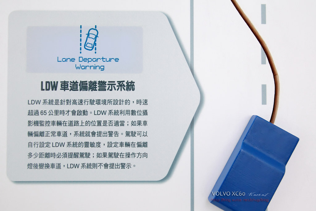下方為 LDW 車道偏離警示系統 , 含 QA 車流輔助與 DA 車距警示功能的 ACC 主動車距控制巡航系統 , BLIS 盲點偵測系統