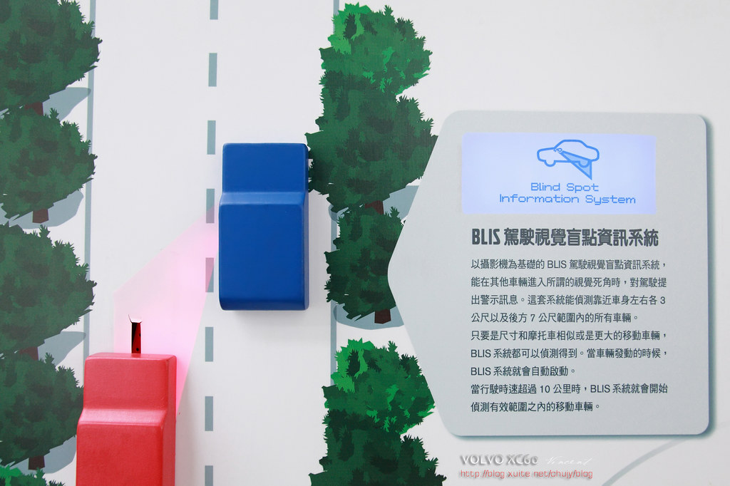 BLIS 盲點偵測系統, 偵測斜後方是否有車輛處於盲點內, 若有, 則亮燈提醒駕駛人. 偵測 sensor整合於車尾側邊感應.